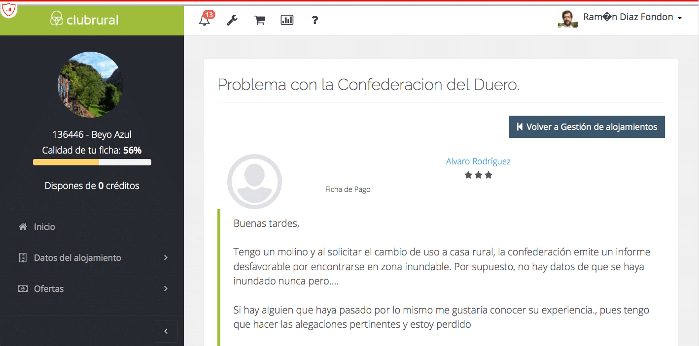 Estimados compañeros: Esto es absolutamente demencial. Yo tengo dos molinos de agua en la Taifa de Andalucía, en Málaga, concretamente, y la cuenca hidrográfica simplemente es un ABSOLUTO CAOS. En mi Taifa -no se cómo será en los distintos reinezuelos de España- exigen un estudio de los últimos 500 años… y por la propia naturaleza de los molinos, evidentemente, TODOS se han tenido que inundar alguna vez. Tenemos salida a zonas no inundables, pero en la práctica TODO ES UN CUENTO CHINO. Si tomamos como referencia los últimos 500 años ABSOLUTAMENTE TODA ESPAÑA HA SUFRIDO CUALQUIER TIPO DE CATASTROFE. Pero desde lo de Viescas, los funcionarios no se atreven a firmar un papel dando permisos, y nosotros pagamos el pato. Te puedes tirar desde un paracaidas, hacer puenting o escalar el Naranjo del Vulnes… pero no puedes dormir en un lugar idílico porque cada 7 o 50 años se inunda unas horas. Soluciones: Yo creo que la única es obligar a que te contesten por escrito -tienen obligación de hacerlo- y si es negativa, ir a un contencioso exponiendo esta estupidez alegando que si no dan lincencia a tu molino, DEBEN DECLARAR NULAS TODAS LAS LICENCIAS DE TODOS LOS MOLINOS DE ESPAÑA, porque todos, por su propia naturaleza, son inundables. Apunto que llevo 16 años tratando de que me contesten sin resultado alguno, y dentro de poco creo que mi expediente estará en la mesa de la Presidenta de Andalucía porque he hecho lo imposible para conseguir el maldito permiso sin que NADIE me haga pajolero caso, pero he hecho lo que creo que todos debemos hacer. Ir a la radio y a los periódicos contando la imbecilidad que supone prohibir el uso turístico de los molinos de agua, que es para lo único que sirven ahora.